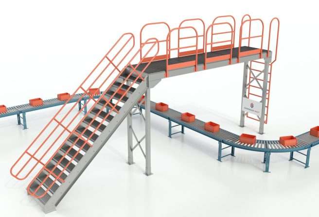 Catwalk mezzanines are elevated walkways or platforms typically used in warehouses, manufacturing facilities, or distribution centers. They allow workers to access areas at a height without obstructing the floor space below. These mezzanines span between racks, shelves, or machinery, providing a walkway for employees to efficiently navigate between storage areas or equipment.