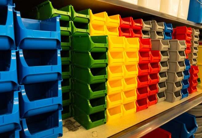 These plastic storage bins or containers are large and they can be stacked as well. They have dimensions of 15 x 19 x 12. It is designed to hold your tools, products, warehouse items, or other large parts you may have around the business that should be kept together. It is also resistant to most chemicals. They are easy to clean and they cannot rust because they are not made of metal. The stackable storage bins are lightweight for their overall size at 4.5 lbs per bin. A single order means that you will receive one of these large stackable storage bins.