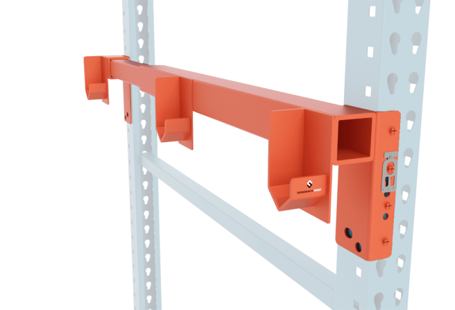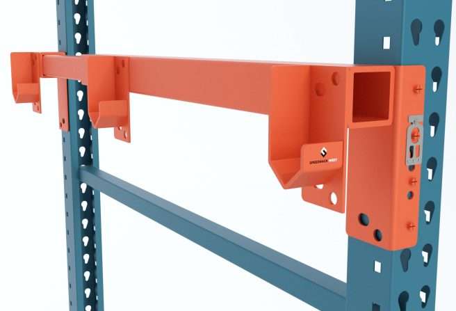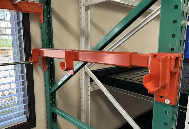 These adjustable brackets will work on pallet racking that is 36″ to 48″ deep (or contact us for a custom solution that will fit your business needs).