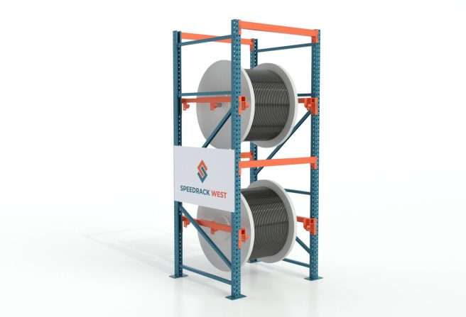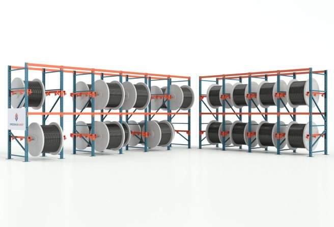 Adjustable reel brackets let you utilize your existing pallet rack to easily add convenient storage for spools of wire, rope, electrical cables, chains and more. These quickly and easily attach to existing pallet rack uprights in the same way that a standard pallet rack beam attaches. Each bracket is capable of accepting up to a 2″ diameter rod that you supply.