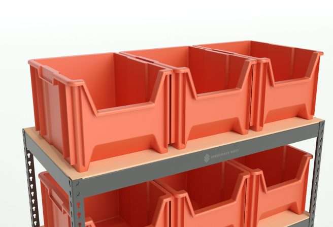 These are large stackable plastic storage bins. Larger items are no problem for these stackable bins. They also work well for parts you may have in your possession. It is 17-1/2″ x 16-1/2″ x 12-1/2″. It is also stackable. The giant storage bins you see here are easy to clean and they are very durable. They are also somewhat lightweight at 4 lbs. You can find smaller sizes of these bins there.