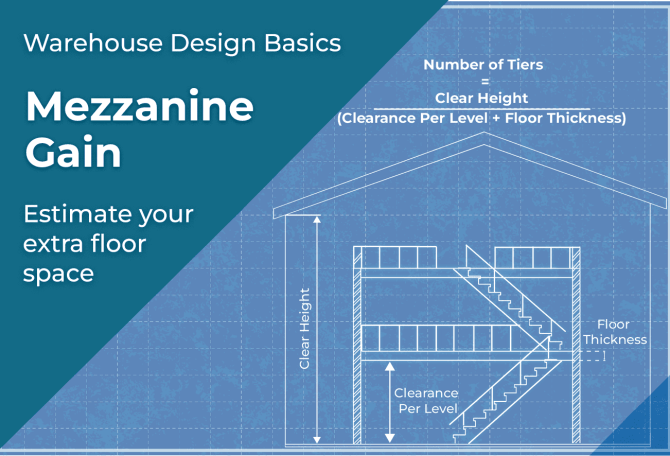 - Number of tiers = Clear height / (Clearance per level + Mezzanine floor thickness)