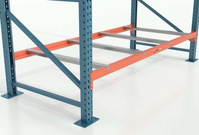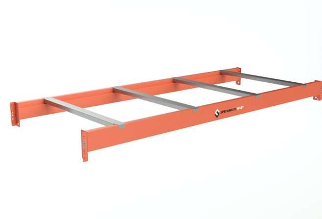 Pallet rack cross bars are a less expensive option than wire mesh decking, and are used when only pallets are stored on the racking.
