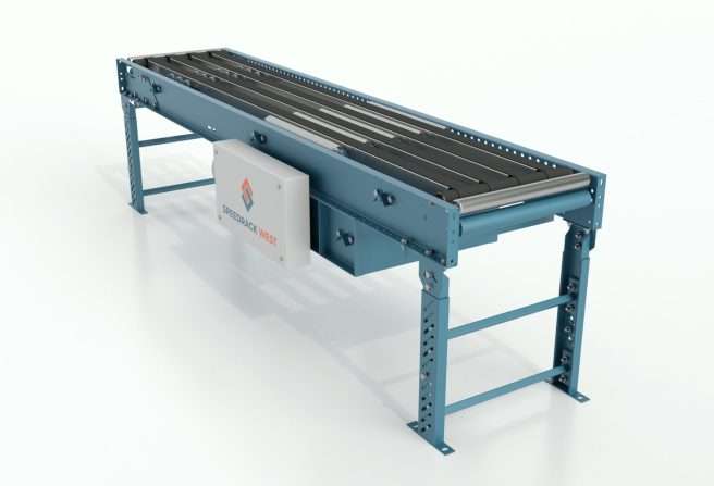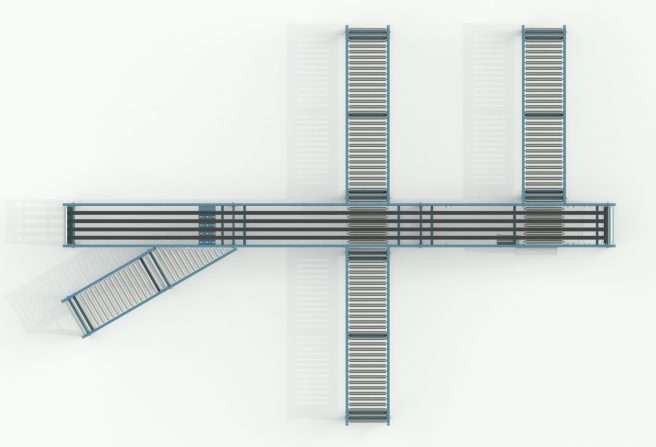 The Narrow Belt Sorter utilizes multiple belts to transport products to diverters that have been strategically located along the sorter. Both the Skewed Wheel Diverter and the Roller Diverter can be used as means of diverting from the Narrow Belt Sorter. The model NBS from Roach has a 90° roller transfer (single or bidirectional) and a 30° skewed wheel diverter (single direction). You can use them to convey small to medium-sized items to multiple points (e.g., packing stations).